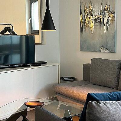 Mit einer großzügigen Wohnfläche von 75 Quadratmetern bietet die 2-Zimmer Ferienwohnung Cosmopolitan ausreichend Raum für urbanen Komfort und stilvolles Wohnen.