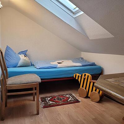 Informationen zum Gastgeber Ruhiges Haus mit zwei hellen Dachgeschosswohnungen im (1. Stock) im Einfamilienhaus mit Blick auf das Dorf bzw. in die Schweiz und zum Rhein.