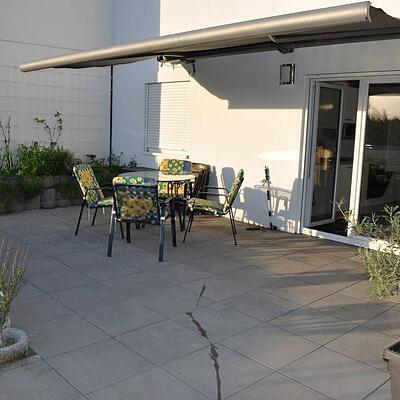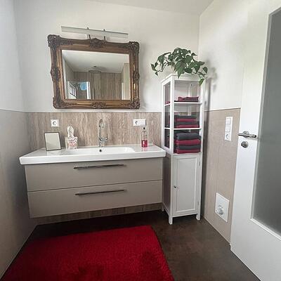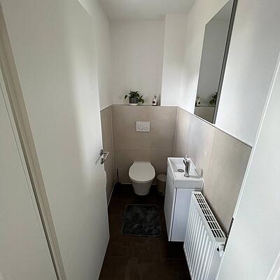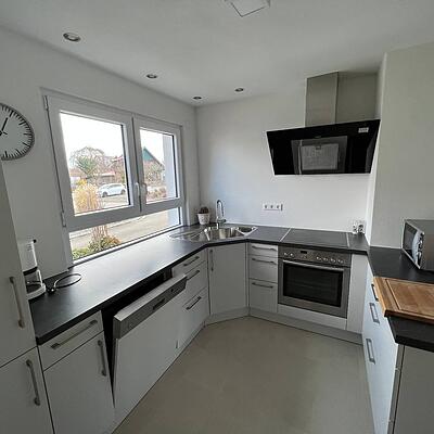 Die Wohnung verfügt über zwei Schlafzimmer, ein Wohnzimmer mit Essbereich und Küche, sowie ein großes Bad mit Dusche ( mit Fenster) und ein großes Gäste WC ( mit ...