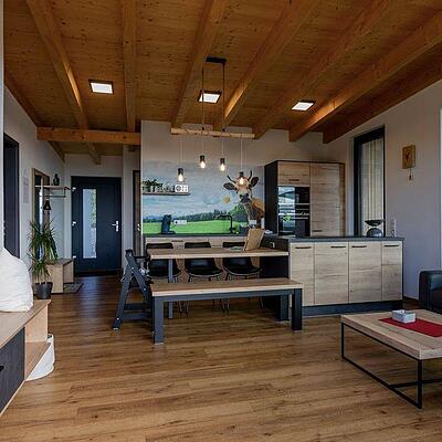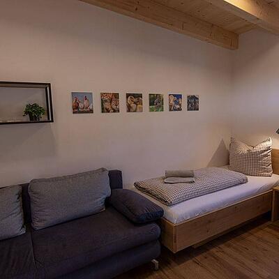 Diese Ferienwohnung befindet sich im Erdgeschoss eines eingeschossigen Einfamilienhauses und liegt in Christazhofen, in einer wenig befahrenen Seitenstraße am Ortsrand.