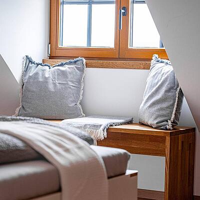 Informationen zum Gastgeber Die Dachgeschoßwohnung besteht aus Schlafzimmer,Dusche / WC, Wohnzimmer mit großer Küche und Essbereich, Balkon ideal für 2 Pers. + 2 Kinder.