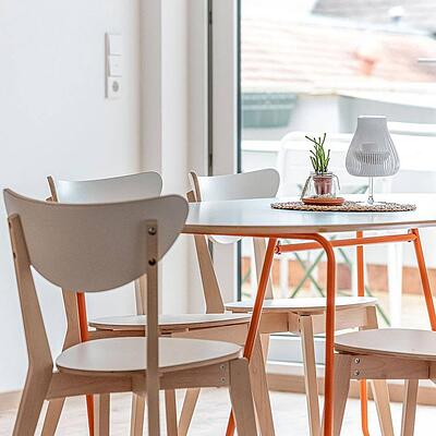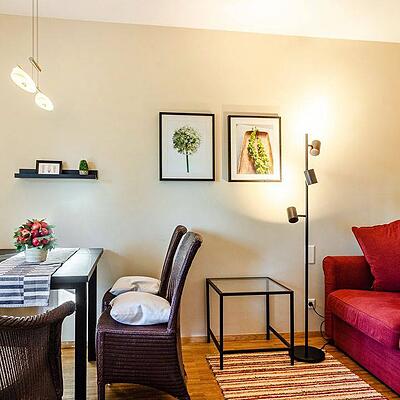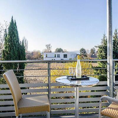 Die Ferienwohnung befindet sich in einem hochwertigen Neubau im 1. Obergeschoss und besticht durch einen großzügigen Süd-Balkon mit einem Essplatz für vier Personen ...