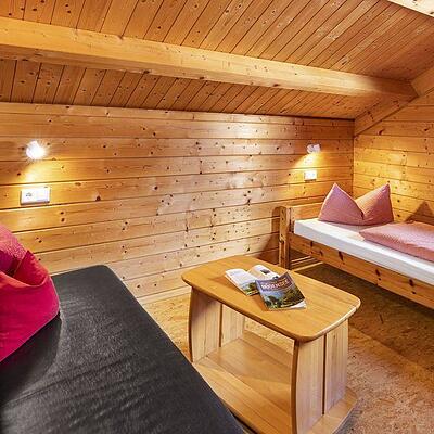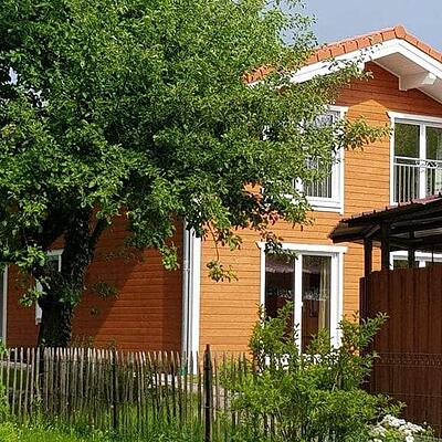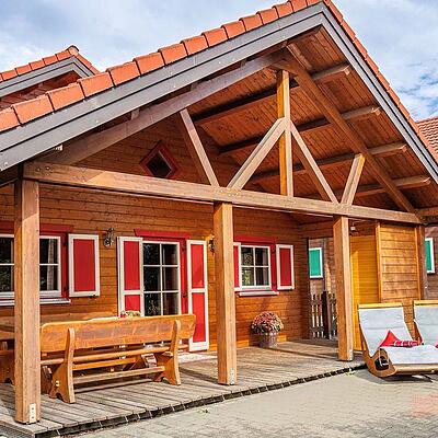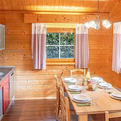 Das liebevoll und komfortabel ausgestattete Ferienhaus in Holzblockbauweise hat 4 separate Schlafzimmer, eine Küchenzeile mit Essecke und einen gemütlichen Wohnbereich.