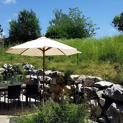 Unser Ferienhaus "Felsengarten" mit Südostausrichtung ins Grüne ist 85 qm groß und eignet sich für bis zu 5 Personen.
