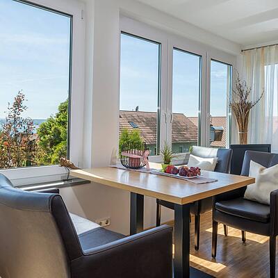 Informationen zum Gastgeber Ferienwohnung mitten in den Weinbergen, mit Panoramasicht über den Bodensee und Alpensicht, für 2-7 Personen, Balkon, TV, Parkplatz, ...