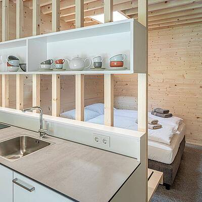Der Auftakt der Rundtour ist ein gemütlicher Almbummel, vorbei am bewirtschafteten Skiheim , bergauf zum Waldrand. Dort teilen sich die Wege: Rechts geht es nach Hohenems und Ebnit, links zum Bocksberg. Die ab hier weiß-blau-weiße Markierung (für alpine Bergwege) irritiert nur auf den ersten Metern. Denn der Anstieg folgt noch ein Weilchen einem breiten Forstweg, biegt aber nach einer Bachquerung rechts in einen Steig ab. (Keinesfalls sollten Wanderer sich dazu verleiten lassen den Fensterliwand-Steig zu suchen, dessen Beschreibung im Internet umhergeistert. Dies ist eine schwierige Kletterei!) Der markierte Wanderweg zum Bocksberg steigt über einen Wurzelpfad steil zum bewaldeten Westgrat an. Wie auf einem Dachfirst geht es nun gut gesichert auf den felsigen Gipfelstock zu. Eine kurze Leiter bildet den Anfang, gefolgt von einem Spreizschritt. Nur Mut! Wenn diese Klettereinlage geschafft ist, geht es am Drahtseil und über Eisensprossen wie auf Treppen aufwärts. Anregendes «Finale furioso» ist eine lange Leiternkombination zum Gipfelkreuz . Der Abstieg erfolgt auf der Ostseite über die Bocksbergalpe zum „mit Aussichtsbänkle bestückten“ Wanderweg, um den Bocksberg herum, zurück nach Schuttannen.