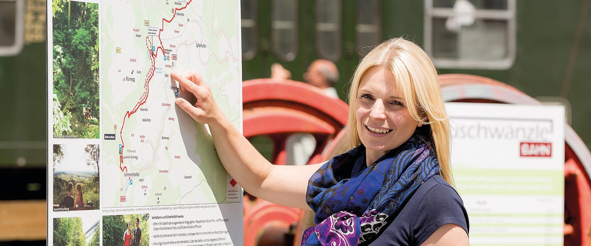 Wandern bergab an einer historischen Bahnlinie. Die Wanderung zwischen den Bahnhöfen Blumberg-Zollhaus und Weizen vereint die ganze Schönheit der Natur rund um die Stadt und die faszinierende Technik der Sauschwänzlebahn. Woher diese ihren Namen hat, wird angesichts der vielfach gewundenen Linienführung