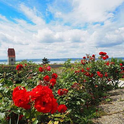 Wem die fast 13 Kilometer dann doch zu viel werden, kann zwischen den beiden Eckpunkten der Wanderung mit dem Kursschiff (oder dem Linienbus) fahren. Unser Wandertipp nimmt seinen Anfang am Rathausplatz in Hagnau, führt am Winzerverein und der katholischen Kirche St. Johann Baptist vorbei zur B31, steigt nach deren Querung durch die Riedlegasse und schließlich durch Reben zur Wilhelmshöhe an. Der Panoramapunkt sucht seinesgleichen: ausgebreitet liegen Hagnau, eingebettet in Rebhänge, und der Bodensee zu den Füßen. Bei klarer Sicht bildet die Alpenkette – allen voran der Säntis – das einmalige Panorama.